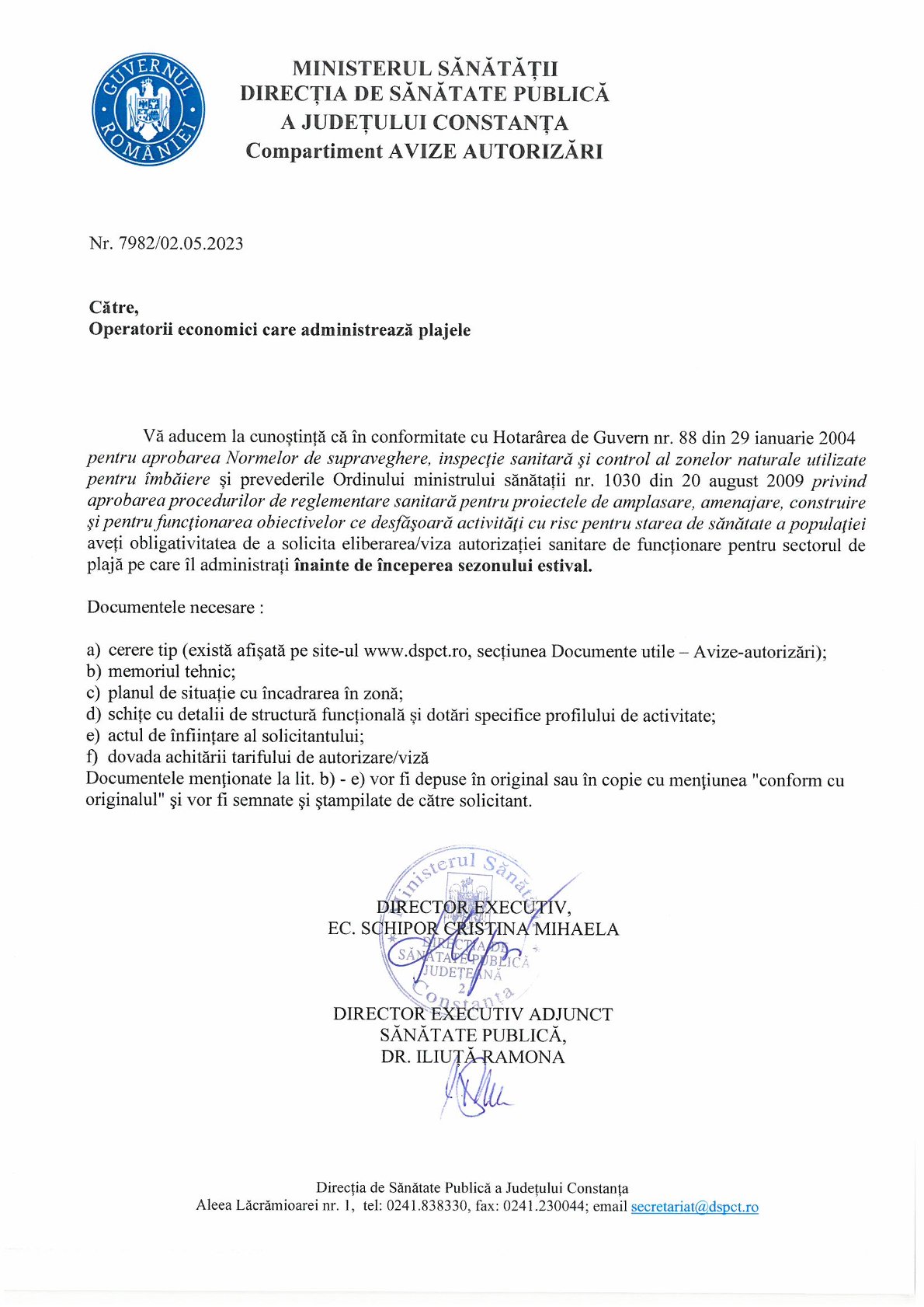 icon 02.05.2023 - Anunțuri importante ANUNȚ CĂTRE TOȚI OPERATORII ECONOMICI CARE ADMINISTREAZĂ PLAJELE Fisiere ataşate