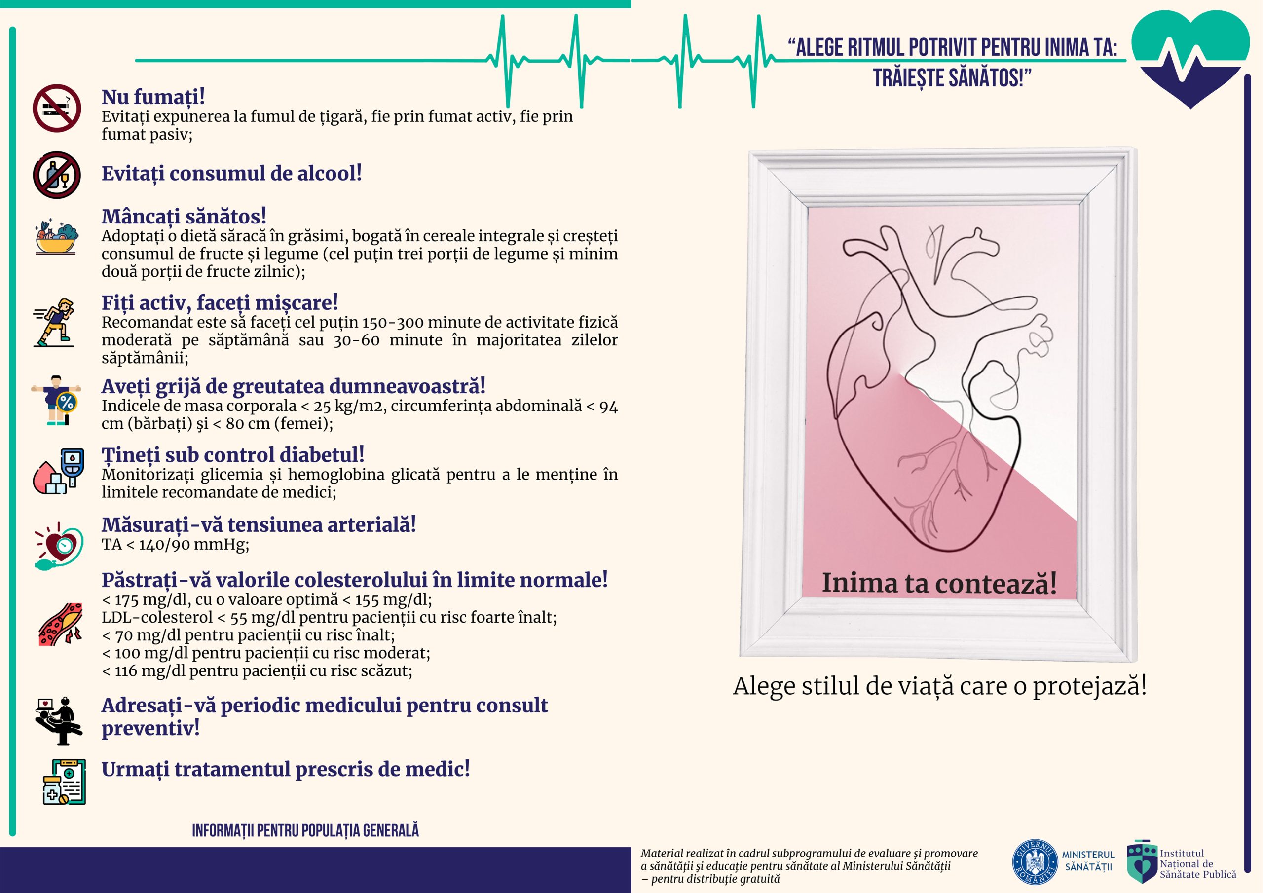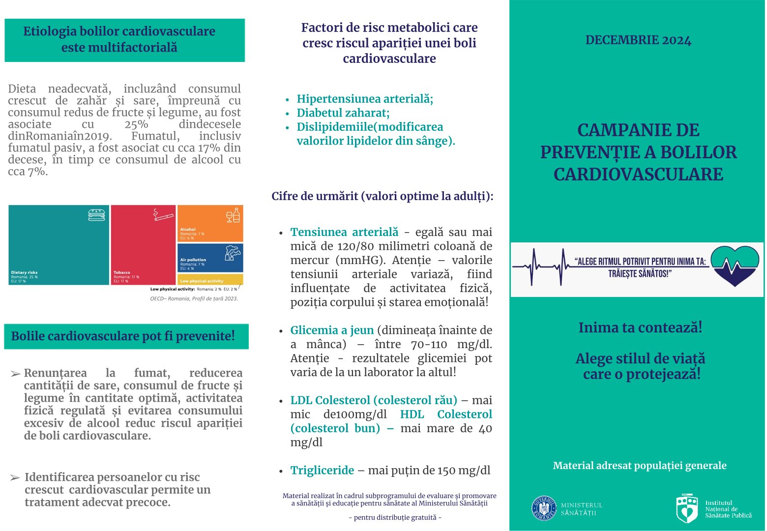 Campania de prevenție a bolilor cardiovasculare ”Alege ritmul potrivit pentru inima ta: Trăiește sănătos!” Decembrie 2024 avand drept Slogan “Inima ta contează! Alege stilul de viață care o protejează!”