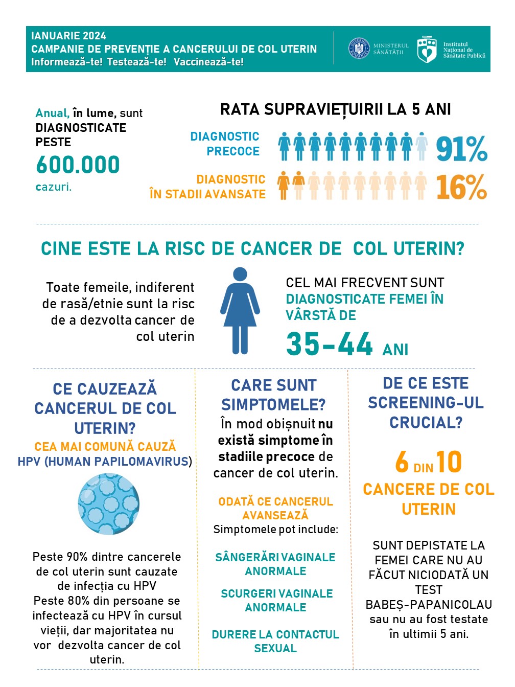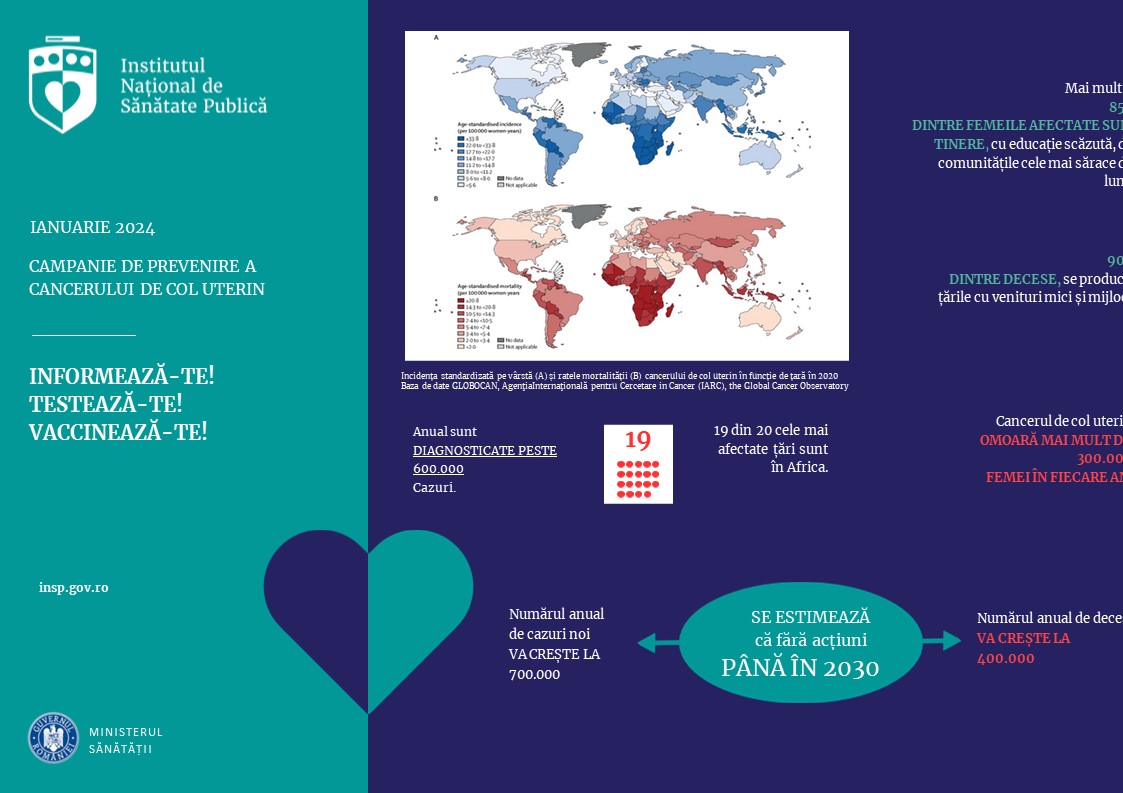 icon 15.01.2024 - Educație pentru sănătate Campania I.E.C. Preventia Cancerului de col uterin si promovarea vaccinarii impotriva HPV- ianuarie 2024 Fisiere ataşate Comunicat de presa - Col uterin ianuarie 2024 Slide 1 Slide 2 Slide 3 Slide 4 Slide 5 Slide 6 Slide 7