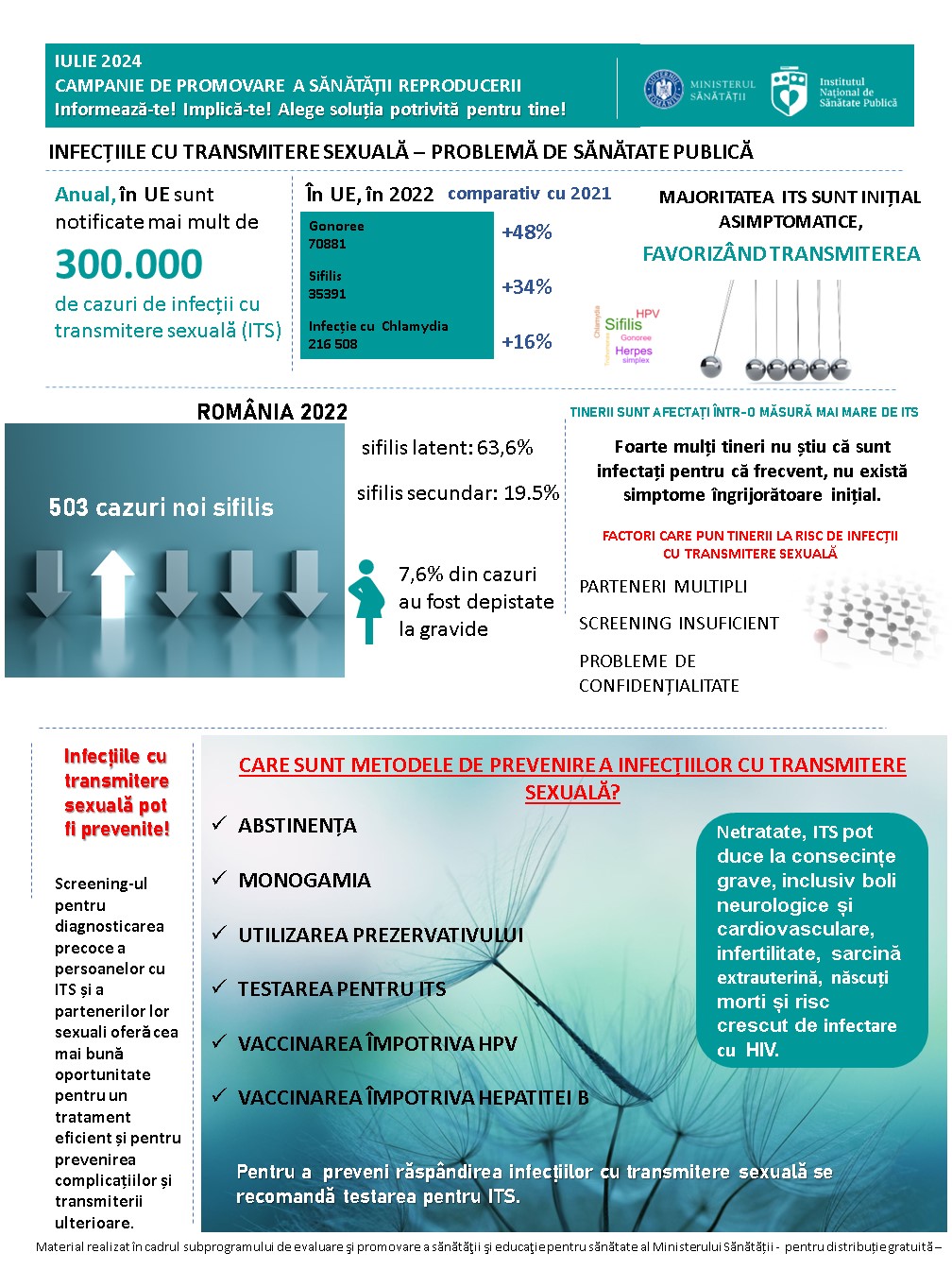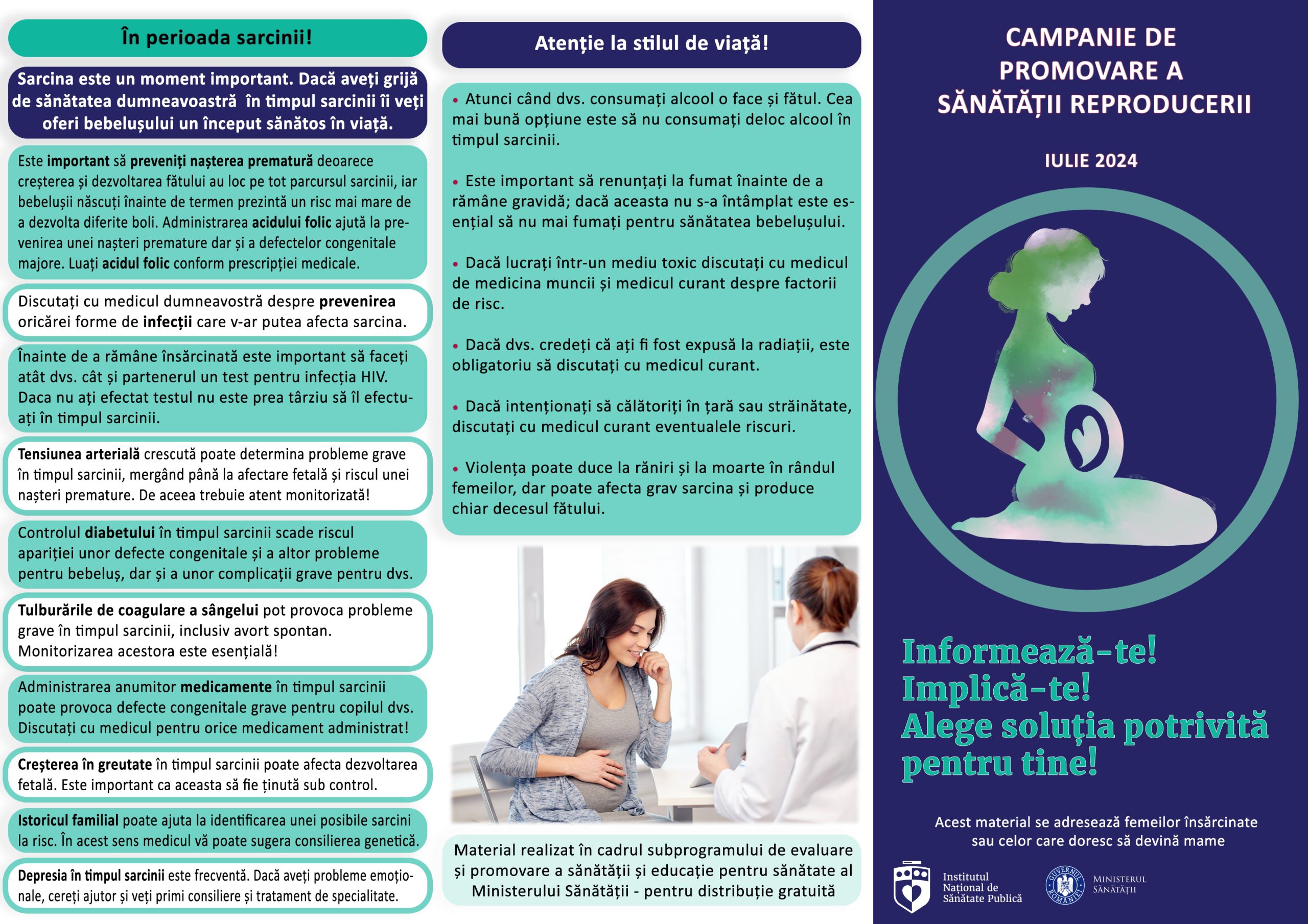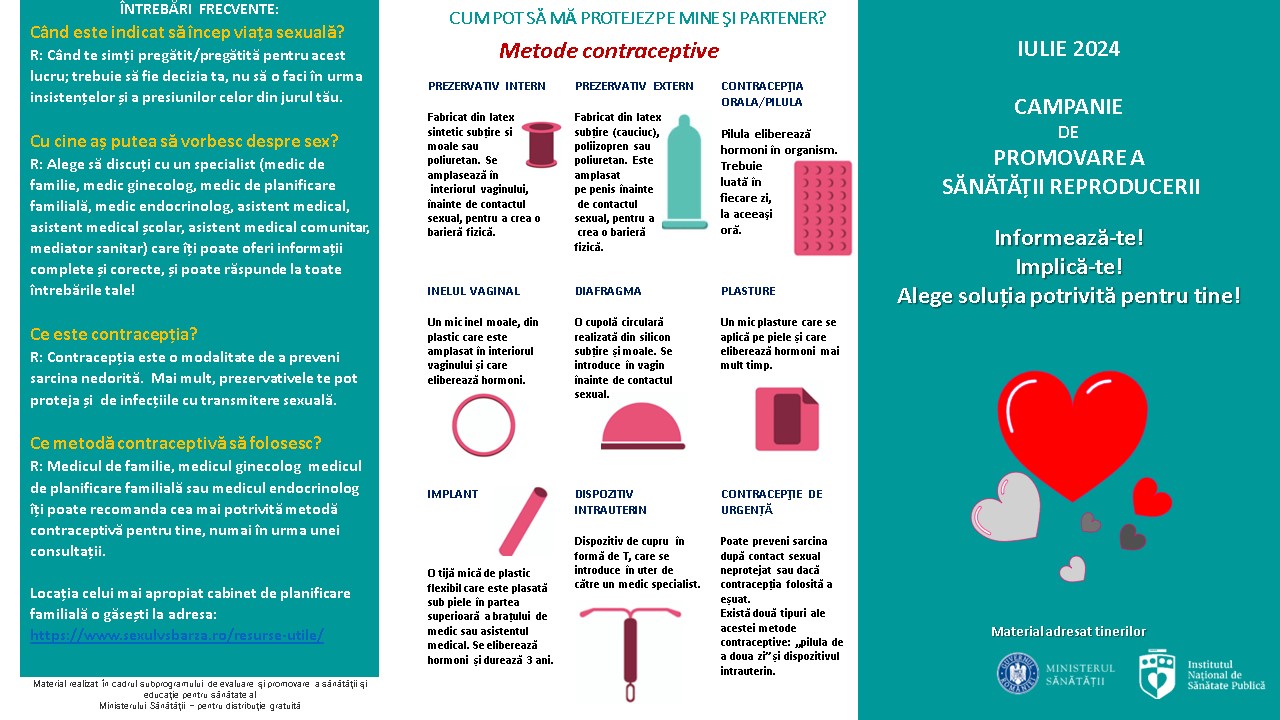 icon 03.07.2024 - Educație pentru sănătate Campania Promovarea Sanatatii reproducerii, iulie 2024 Fisiere ataşate Comunicat de presa campanie SR 2024 Poster ITS Poster planificare familiala ITS 1 ITS 2 ITS 3 ITS 4 ITS 5 Pliant gravide pg.1 Pliant gravide pg.2 ITS 1-1 ITS 1-2 Poster contraceptie adolescenti ITS 2-1 ITS 2-2