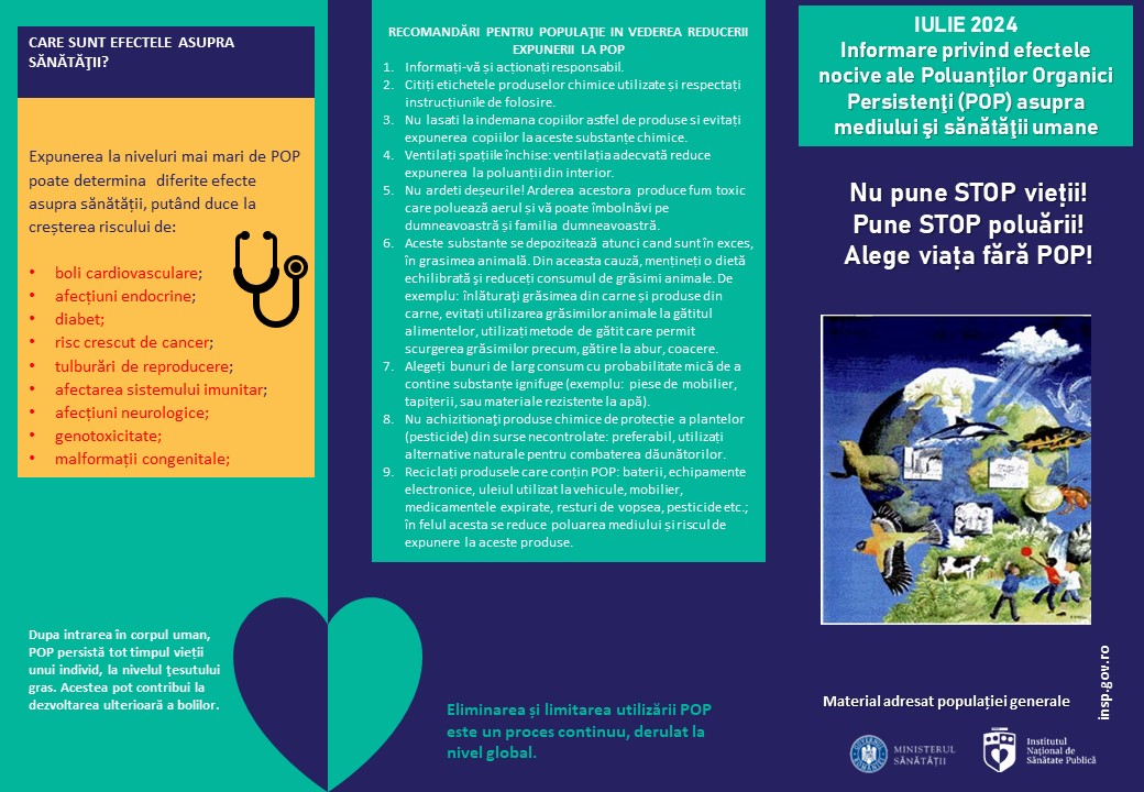 icon 22.07.2024 - Educație pentru sănătate Efectele nocive ale poluantilor organici persistenti ( POP) asupra mediului si sanatatii umane Fisiere ataşate 2024 Comunicat presa – POP 17 iulie Afis 1 Afis 2