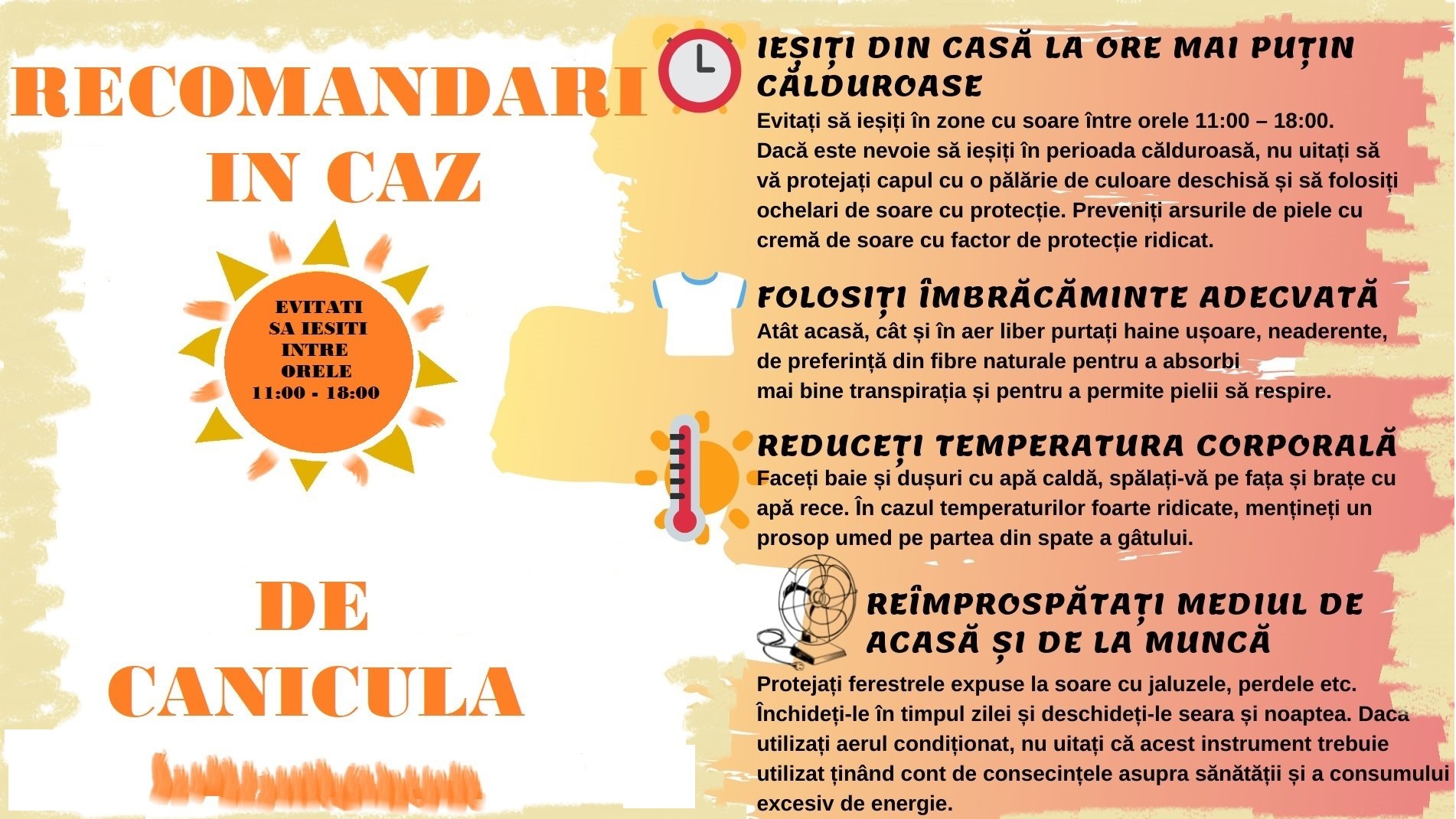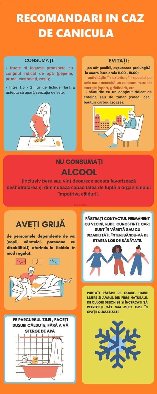 icon 07.07.2022 - Educație pentru sănătate Recomandări privind protecția populației pe perioada caniculei Fisiere ataşate Canicula afis 1 Canicula afis 2 Canicula afis 3 Recomandări privind protecția populației pe perioada caniculei