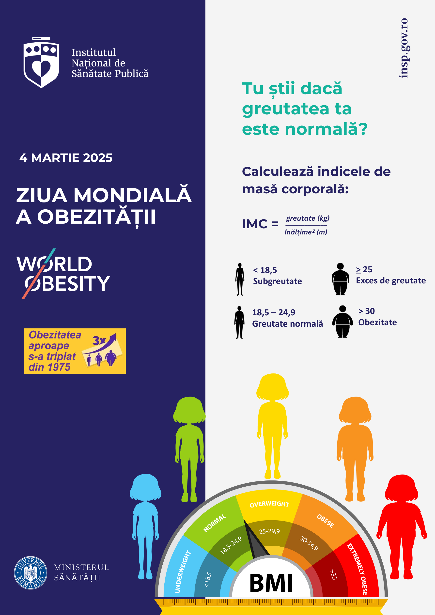 icon 05.03.2025 - Educație pentru sănătate Ziua Mondială de Luptă Împotriva Obezității – 4 Martie 2025 Fisiere ataşate Comunicat de presa ZMO 2025 Poster ZMO 1 Poster ZMO 2